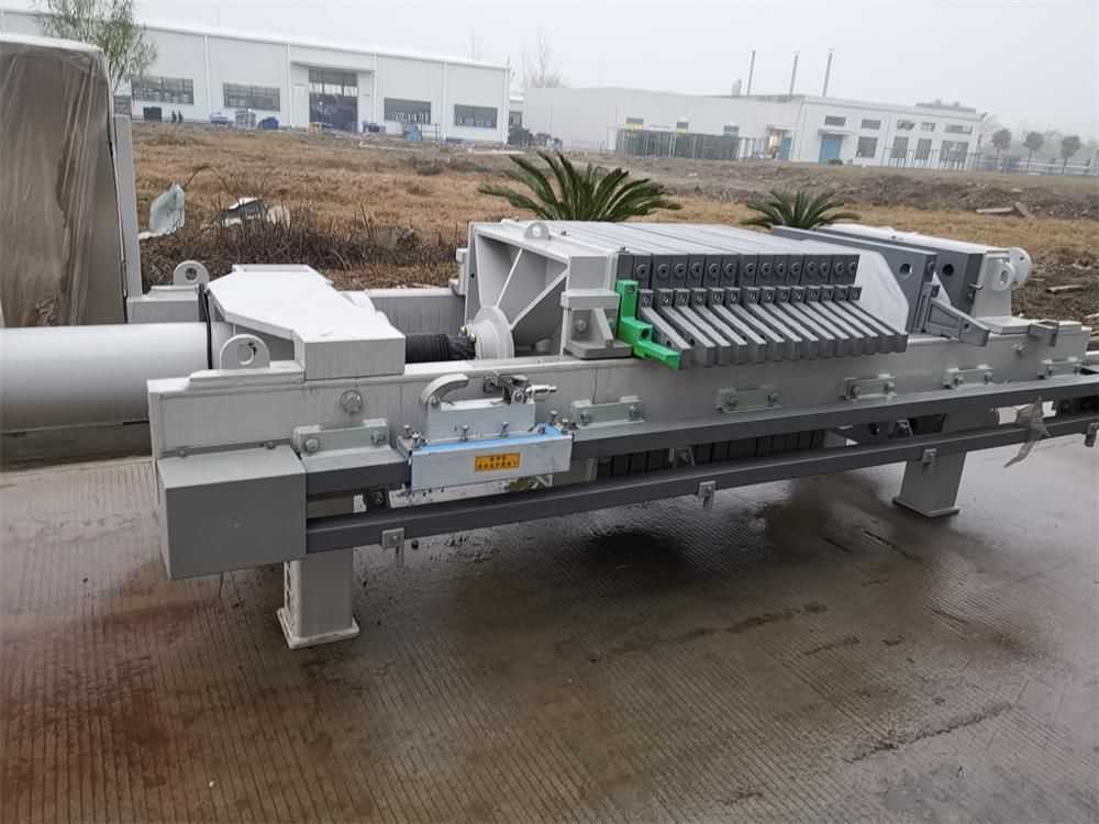 隔膜壓濾機(jī)和常規(guī)箱式壓濾機(jī)的主要區(qū)別在于,在濾板的兩側(cè)都增加了兩個彈性膜(復(fù)合橡膠膜是一個整體式膜。在操作期間,當(dāng)進(jìn)料完成時,將高壓流體介質(zhì)注入膜中,并使整個膜膨脹以過濾濾餅,以進(jìn)一步使濾餅脫水,這是壓力過濾。在隔膜壓濾機(jī)運(yùn)行期間,液壓系統(tǒng)使用液壓油作為壓力載體來傳遞內(nèi)部壓力。